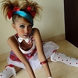 Holy fuck, two teens in a row? What did I win, the teen whore lottery? 18 year old Air is.....well she's a fucking 80 lb. fuck doll who is basically as light as Air. And look at her adorable Emo hair style and dress. A real life 'Living Doll' and she's here to fuck...and believe me, I fucked her. I held back for as many positions as I could until I finally shot my load all over her hairless vagina.