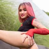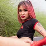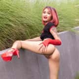 Tontoey exudes deliberate mischief as she confidently positions herself amidst the grass, her 5" high heels adding an intriguing contrast to the natural surroundings. Clad in alluring attire, she nonchalantly rests against the wall, anticipation in her gaze as she awaits the photographer's direction. And then, at last, she unveils the spectacle we've eagerly anticipated. She stripped off her tight jean shorts, pulled up her top, and revealed her naked titties and lovely shaved vagina.