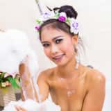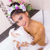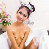 The young and gorgeous Kanni is in the bath today with some foam bubbles and pretty much nothing else. That's fine with us, right? We want to see her completely naked anyway, so let's just skip past the stripping and go straight for skin. Kanni displays her glistening Thai skin, perky little A-cups, and her completely shaved pussy.