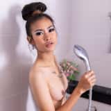 After a long day of being beautiful, Pyanut heads to the bathroom to take a warm shower. Being gorgeous is certainly a difficult and gritty job so washing off the naughty grime makes perfect sense. With her young slim body completely naked, Pyanut gets in the shower and proceeds to showoff her glistening Thai skin and lovely shaved pussy.