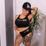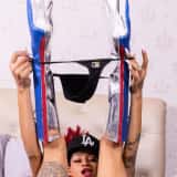 With her distinctive, eye-catching tattoos and a confident aura, Roxy confidently showcases her bold style in PornHub attire. As she gracefully unveils her captivating physique, her sizable fake boobs and vibrant inked artwork come into view. Roxy's undeniable allure commands attention, particularly in this enticing and exclusive photoshoot, where her innate ability to captivate is on full display.