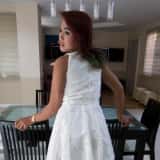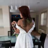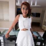 Everyone is away so it's time for Wasinee to play....with her pussy, that is. She's in the dining room doing a little slow dance and starts her striptease. She sexily removes her white dress and yellow panties and reveals her hard nipples and shaved pussy. Once naked, Wasinee starts rubbing her clit and squeezing her tits. She's horny and desires some hard cock.