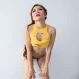 Hana has a little gymnast body. Her toned arms, flat stomach, and perfectly round muscular ass is the definition of a dream body. Watch as Hana provides us with a long strip show as she reveals her perky tits and shaved pussy. Then watch as she plays with her wet silky snatch. This girl is going places....Quite possibly, the delivery ward.