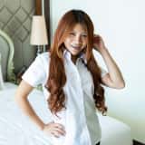 The enchanting Hana has graced us with her presence once more, and let me tell you, this encounter is nothing short of extraordinary. On this occasion, Hana and I unleashed our inhibitions on a spacious, pristine white bed. With the ease of familiarity that comes from knowing each other for a while, we embarked on a fervent and intimate exploration of one another's bodies.